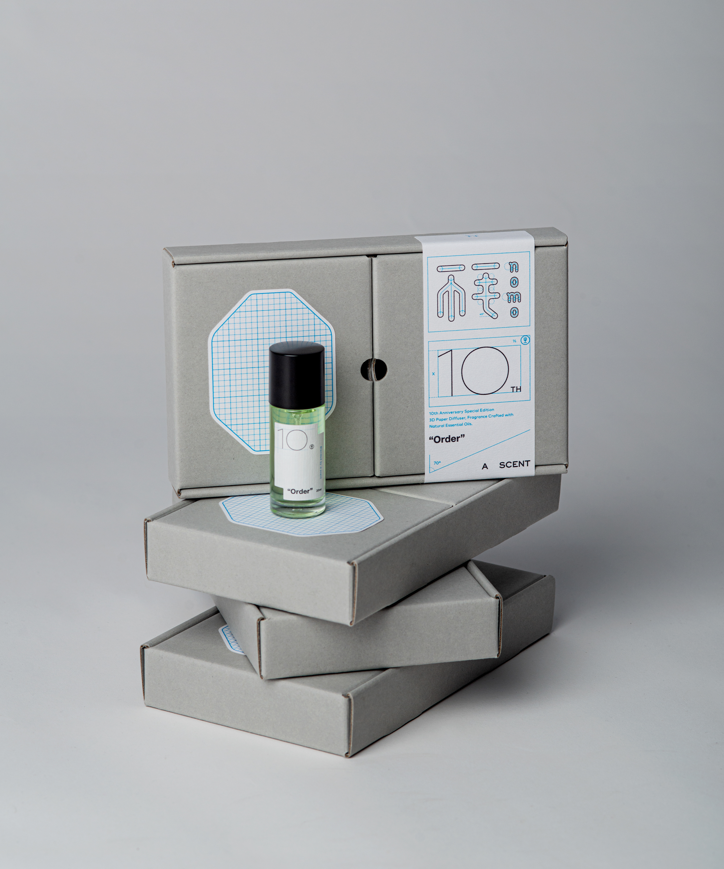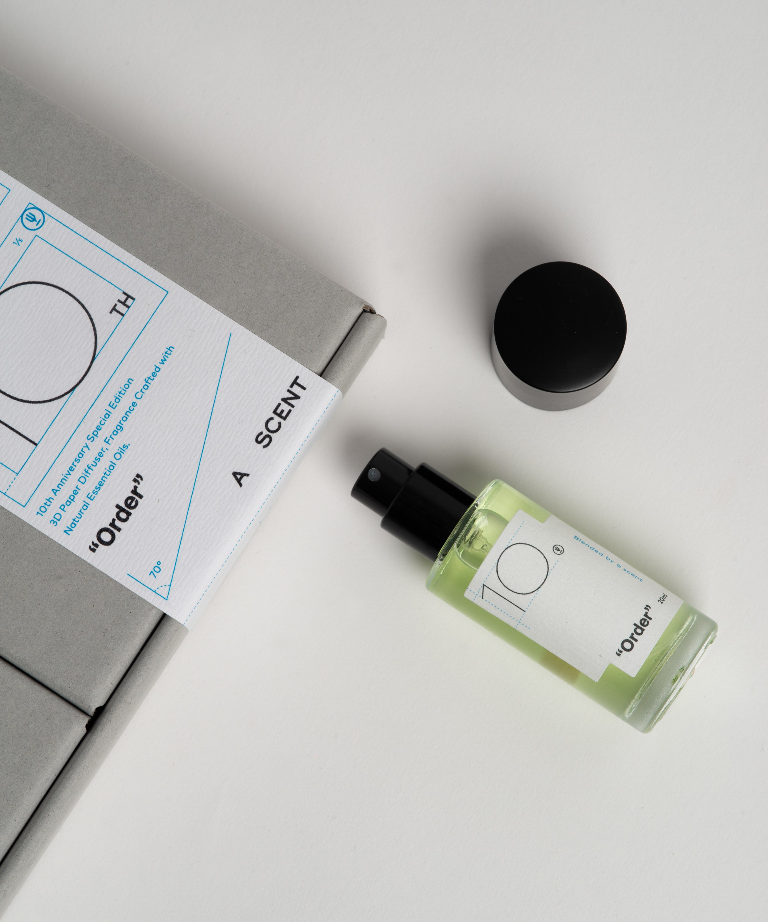 “Order” is a collaborative fragrance created through design and perfumery, conceived as a tenth-anniversary expression of sharing and gratitude. The packaging draws from the designer’s observations of points, lines, and planes, translating identity system drawings and usage guides into a renewed design language that redefines the aesthetics of order.