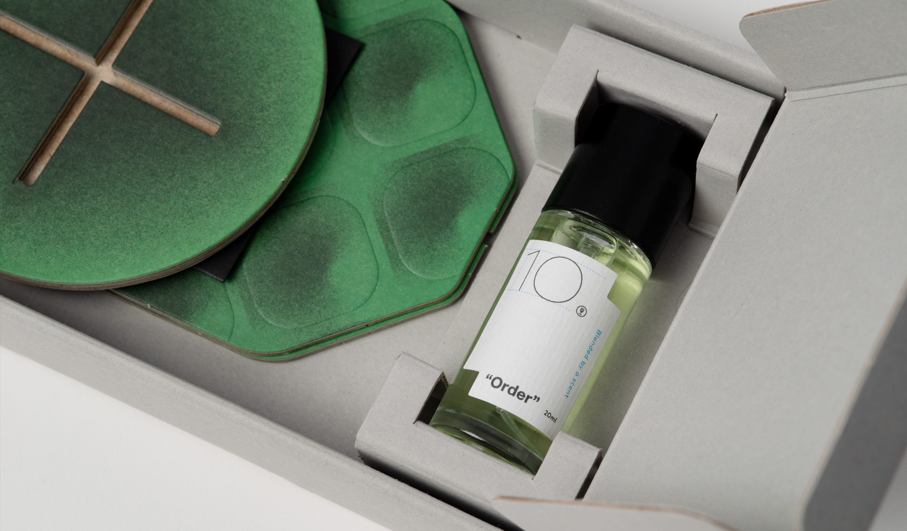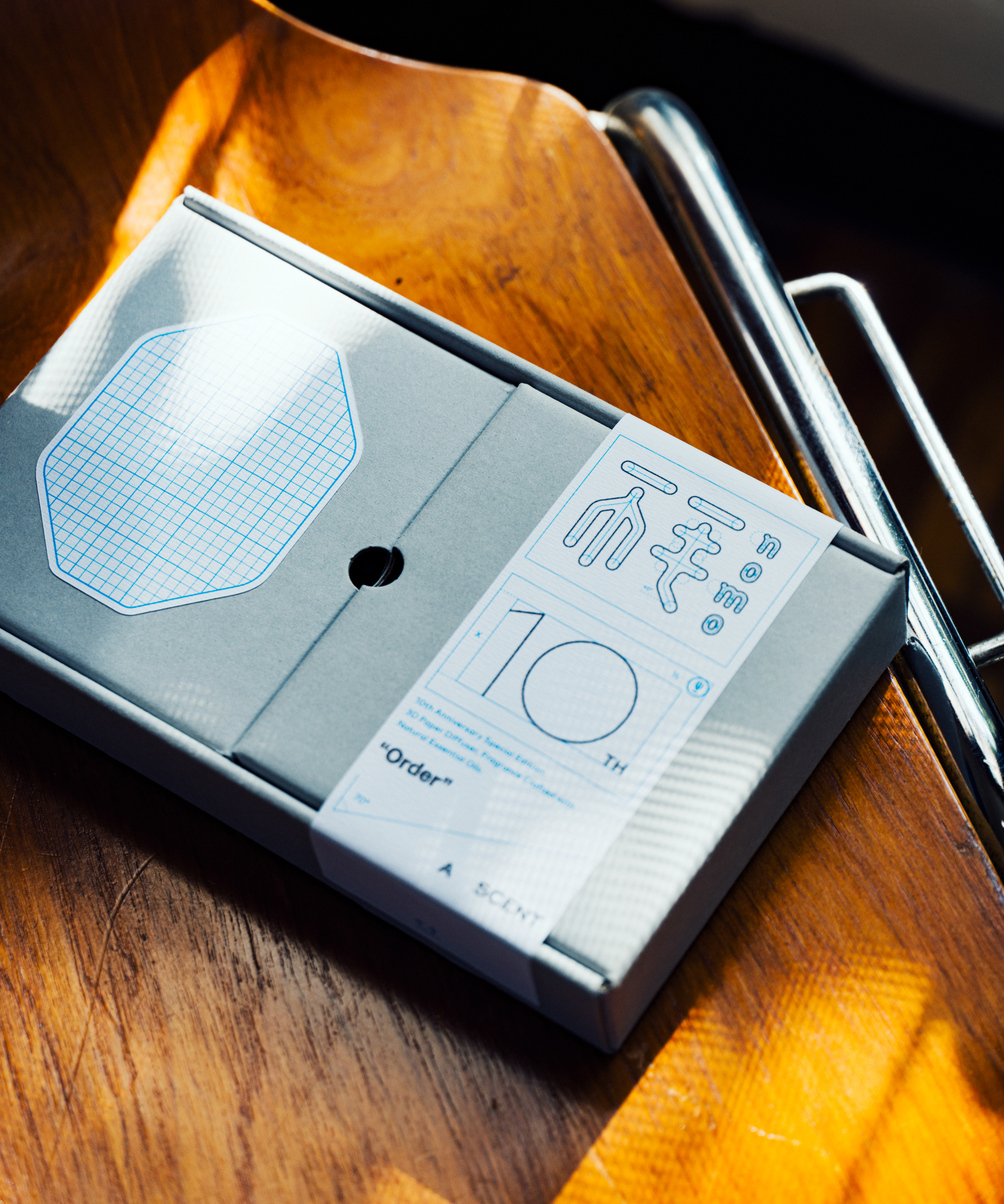設計與調香共同完成的聯名香氛 ——”Order”,源於分享與感謝的十週年紀念之作。包裝概念擷取設計師日常所見的點、線、面,將識別系統的製圖邏輯與使用指南轉化為設計語言,使熟悉的視覺以另類方式觀看,重新定義秩序美學。